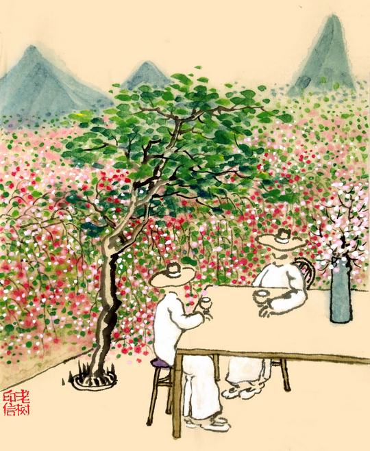 老茶移栽,时间环境非常重要,通过诗人的精心安排,终于长出了好茶,如此不仅毫无痕迹地托喻了人生希冀,而且诗句又是如此之优美,让人于恬淡的茶理农事中感悟到修身养性的启迪和诗人远大的政治抱负。另《问大冶长老乞桃花茶栽东坡》的五言古风(略),意境近似,读之也耐人寻味。